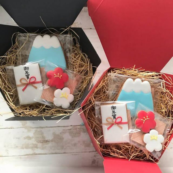 新年を華やかに彩る「謹賀新年アイシングクッキー」は、思わず笑顔がこぼれる愛らしいデザインが魅力のギフトです。富士山や梅をかたどったクッキーは、縁起の良いモチーフでお正月らしさを演出し、贈る相手の心を和ませます。