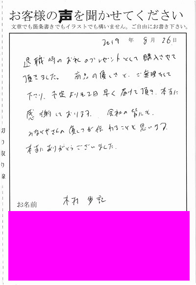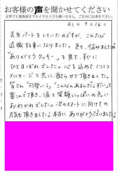退職あいさつのお客様の声 115 『「ありがとうクッキー」を見て、すぐにひと目ぼれでした。』