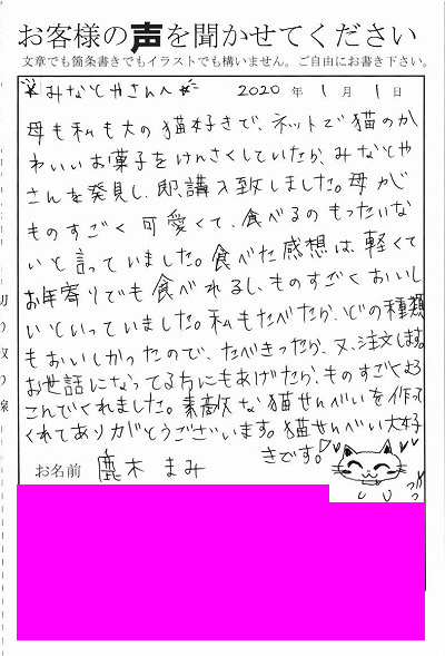 その他の事例・商品のお客様の声 117 『素敵な猫せんべいを作ってくれてありがとうございます。猫せんべい大好きです!』