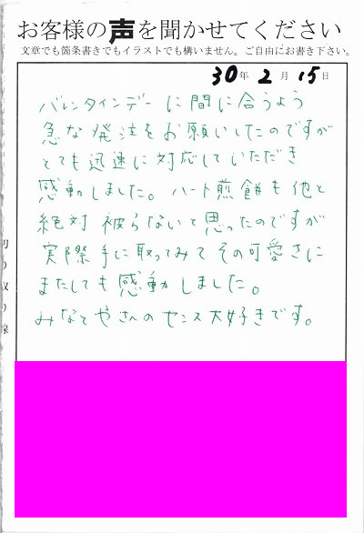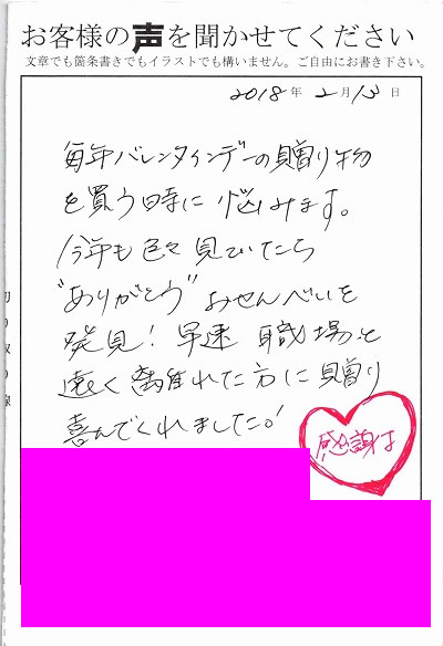 バレンタインデーギフトにご利用のお客様の声 11 『ハート型が可愛い!ととても喜ばれました』