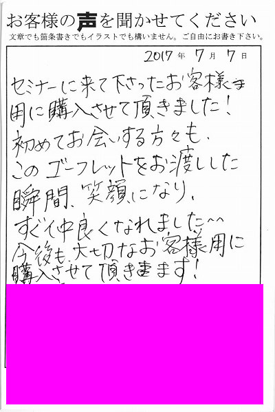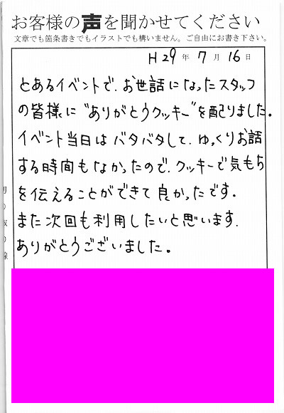 周年行事・イベントにご利用のお客様の声 6 『今後も大切なお客様用に購入させて頂きます』