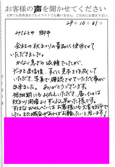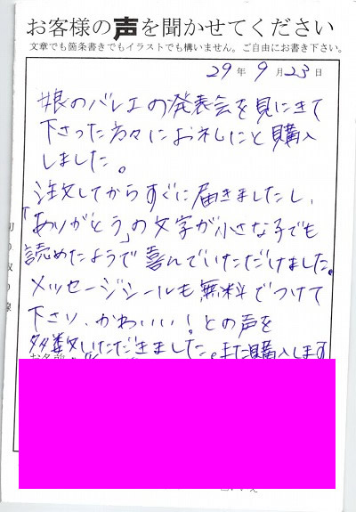 周年行事・イベントにご利用のお客様の声 7 『「ありがとう」の文字が小さな子でも読めたようで喜んでいただけました。』