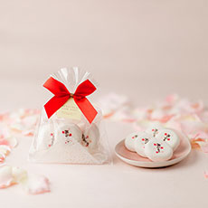 一般的にはいつまでも残るものより、いわゆる「消えもの」が喜ばれるため、小さいお菓子をプチギフトとして選ぶ方が多いようです。上の選択基準をひと言で言えば「結婚式と二人のことをほのぼのと思い出すことができて、もらったときに歓声があがるような素敵なお菓子」ということになります。