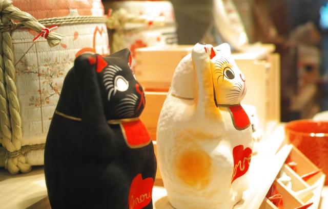 ちなみに、右手(右前脚というべきか)を挙げている猫は金運を招き、左は人を招くといわれています。今度どこかで、お店などに飾ってある招き猫を見かけたら、どちらの手で(脚で?)幸福を招いているか観察してみると面白いですね。
