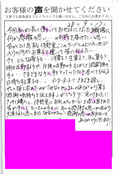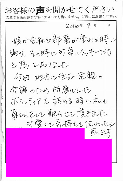 退職あいさつのお客様の声 62 『たくさんの方々に私の感謝の思いのお手伝いをありがとうございました』