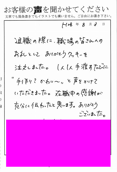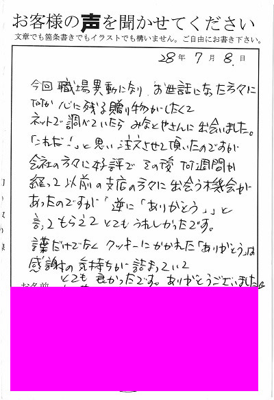 退職あいさつのお客様の声 61 『「ありがとう」は感謝の気持ちが詰まっていてとても良かったです』