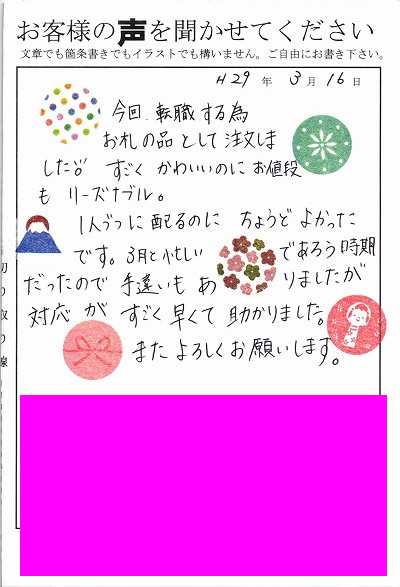 退職あいさつのお客様の声 70 『すごくかわいいのにお値段もリーズナブル』