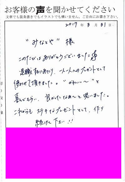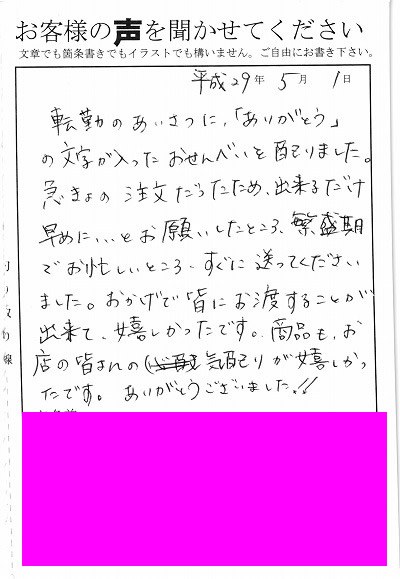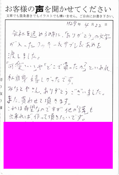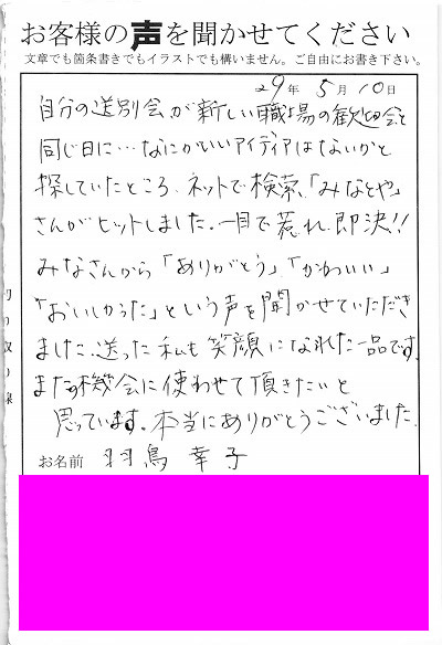 退職あいさつのお客様の声 76 『送った私も笑顔になれた一品です。』