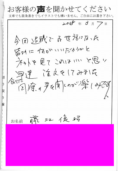 兵庫県 藤江様よりのお声