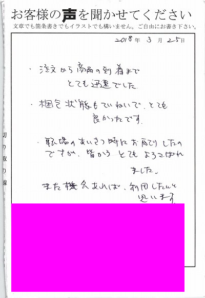 ○○県 ○○様よりのお声