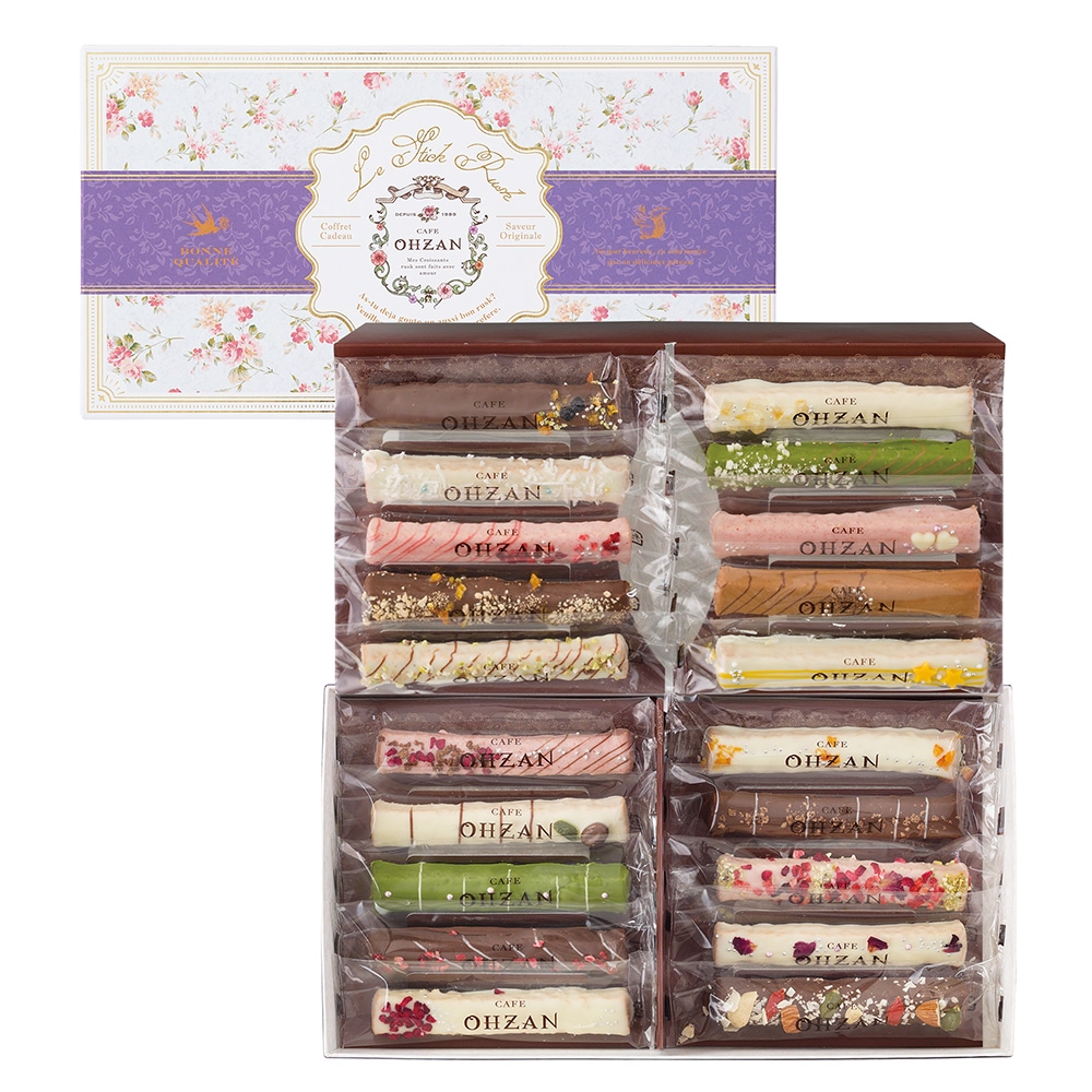 サクサク食感のラスクに濃厚チョコを重ね、全てが異なるデザインの20本アソートだから見た目も楽しいです。個別包装で配りやすい個包装、製造から日持ち60日で準備の自由度が高く、贈り物としての満足度も高いセットです。
