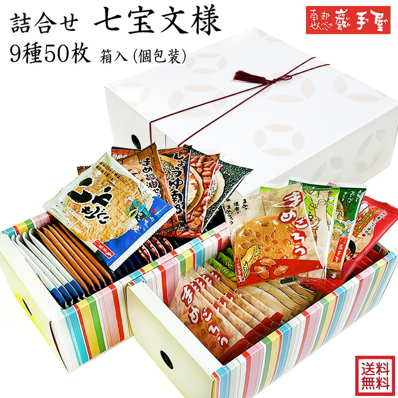 せんべい9種類を一度に楽しめる詰合せ七宝文様は、ご贈答やご挨拶、お祝いなど幅広いシーンに対応できる個包装ギフトです。胡麻や落花生、しょうゆ味をはじめ、かぼちゃやりんご、いかなど甘い味からしょっぱい味までバランスよく揃えた内容で、年代や好みを問わず喜ばれやすい点が特長です。
