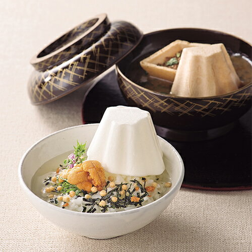 鯛を使用した本格的な和風だし茶漬けを、最中の中に閉じ込めた創作ギフトセットです。鯛茶漬けと梅入り鯛茶漬けの2種類(計6食)が入っており、見た目の華やかさと縁起の良さが両立した逸品です。インスタントで手軽に本格的な味を楽しめる点は、年配の方にも好まれやすく、ご両家顔合わせの場でも好印象を残せます。
