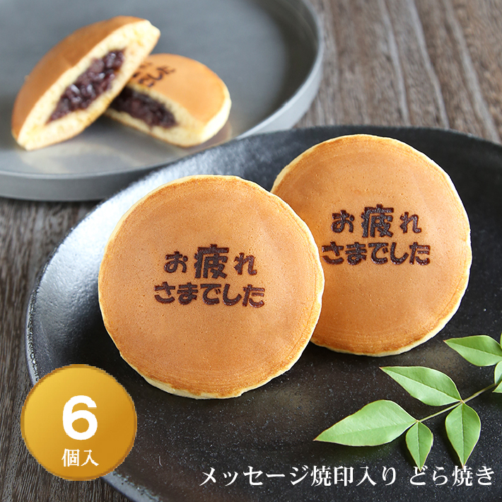 「お疲れさまでした」メッセージ焼印入どら焼き『暁』小倉あん6個入り