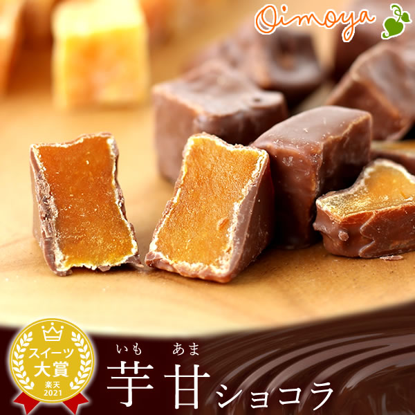 国産さつまいもを蜜漬けした芋甘納豆に、ミルクチョコレートを全体にかけた芋甘ショコラは、和菓子と洋菓子のよさを一度に楽しめるプチギフトです。外側はさくっと軽く、中はしっとりやわらかな食感で、ひと粒ごとに満足感があります。