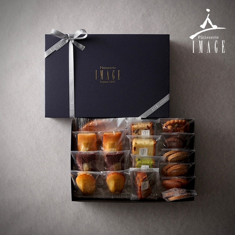 ネイビーカラーの上質なギフト箱に焼き菓子を詰め合わせた高級スイーツギフトとして人気のアソートアラメゾン~M~は、17袋の焼き菓子を楽しめる贅沢な詰め合わせです。
