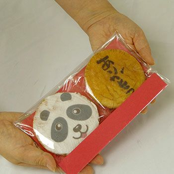 昔ながらの製法で焼き上げており、見た目のかわいさだけでなく味わいにもきちんとした印象があります。さらに、メッセージ煎餅やオリジナルシールを組み合わせられるため、「ありがとう」の気持ちを形にしやすい点も魅力です。