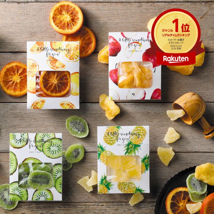 見た目が華やかで手渡ししやすいドライフルーツのプチギフトです。オレンジ、アップル、キウイ、パインが入っており、自然な甘みを楽しめる軽やかなおやつとして選びやすいです。