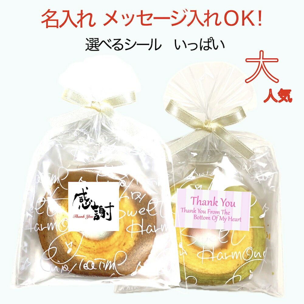 ふわふわ&しっとり食感が楽しめる2層仕立てのバウムクーヘンは、名入れやメッセージ対応も可能なプチギフト。個包装&可愛いリボン付きで、退職や異動時の挨拶にも最適。キャラメルと抹茶の2種をランダムでお届けし、感謝の気持ちを伝えるアイテムとして人気です。