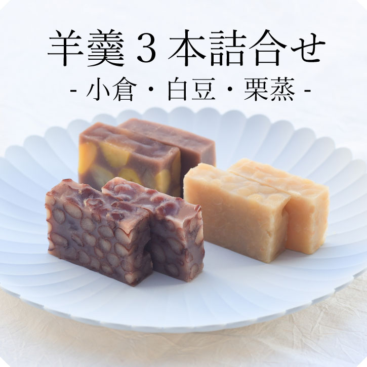 ようかんの詰め合わせで、「紫雲」「白眉」「栗蒸」の3種を一度に楽しめる贅沢なセットです。素材本来の風味を生かした甘さ控えめの味わいに仕上げられています。