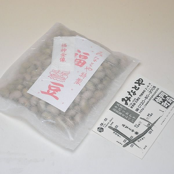 大豆の小袋と砂糖大豆の小袋が入り、鬼の面とおたふくさんのお面をあしらい、更にお守りの入った食べて美味しい節分の縁起物の贈り物として喜ばれてます。