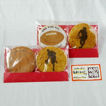 部活を象徴するボールとカッコいいシルエット柄の煎餅のコラボ品です!