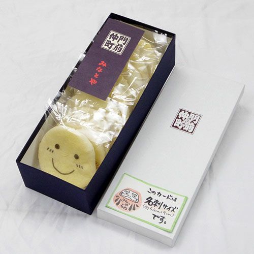 ほほえみ(笑)のおせんべい。2枚入りの手渡しプチギフトに最適です!