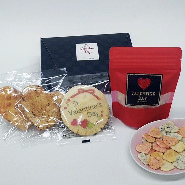 会社の上司やかしこまった方へのバレンタインプレゼントとして化粧箱に入ったハート煎餅(せんべい)です。
