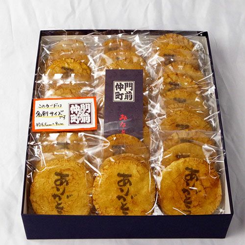 会社を退職する時にみなとやさんの七福にゃんべいと文字入りおせんべいを配り、皆さんに「カワイイね、どこで頼んだの?今度使ってみようかな」と言っていただけました。以前も長期で入院し、退院の際にお願いしたのですが、物だけでなく、感謝の気持ちも言葉(文字)にしてあげれるのは嬉しいです。大勢の人にあげたので、金額がかなりかかったので、もう少し小さいバージョンで安いのも作っていただけると助かります。