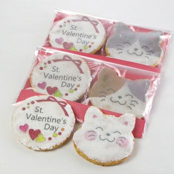 可愛い猫ちゃんのお煎餅にお名前をプリントして納品いたします。簡単にオーダーできるのが特徴です。絵柄を選んでお名前を入力すれば発注できます!【2月3月は注文が立て込むと受注停止になります。】