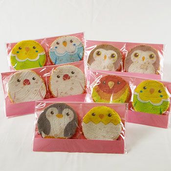 ことり好きさんにアンケートを取りまして厳選した人気のことりさんたちをお煎餅に可愛くデザインしました。セキセイインコ2種、文鳥2種、コザクラインコ、ペンギン、フクロウ、ひよこ、オカメインコ、ボタンインコ、のかわいらしい小鳥のお煎餅です。この中からお好きな柄を選ぶこともできます。
