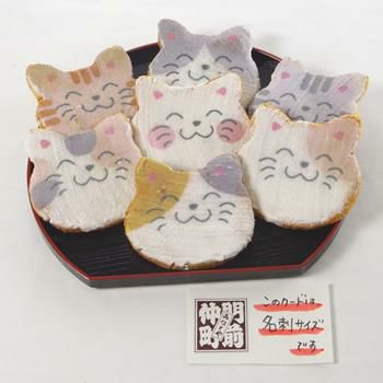 会社を退職する時にみなとやさんの七福にゃんべいと文字入りおせんべいを配り、皆さんに「カワイイね、どこで頼んだの?今度使ってみようかな」と言っていただけました。以前も長期で入院し、退院の際にお願いしたのですが、物だけでなく、感謝の気持ちも言葉(文字)にしてあげれるのは嬉しいです。大勢の人にあげたので、金額がかなりかかったので、もう少し小さいバージョンで安いのも作っていただけると助かります。