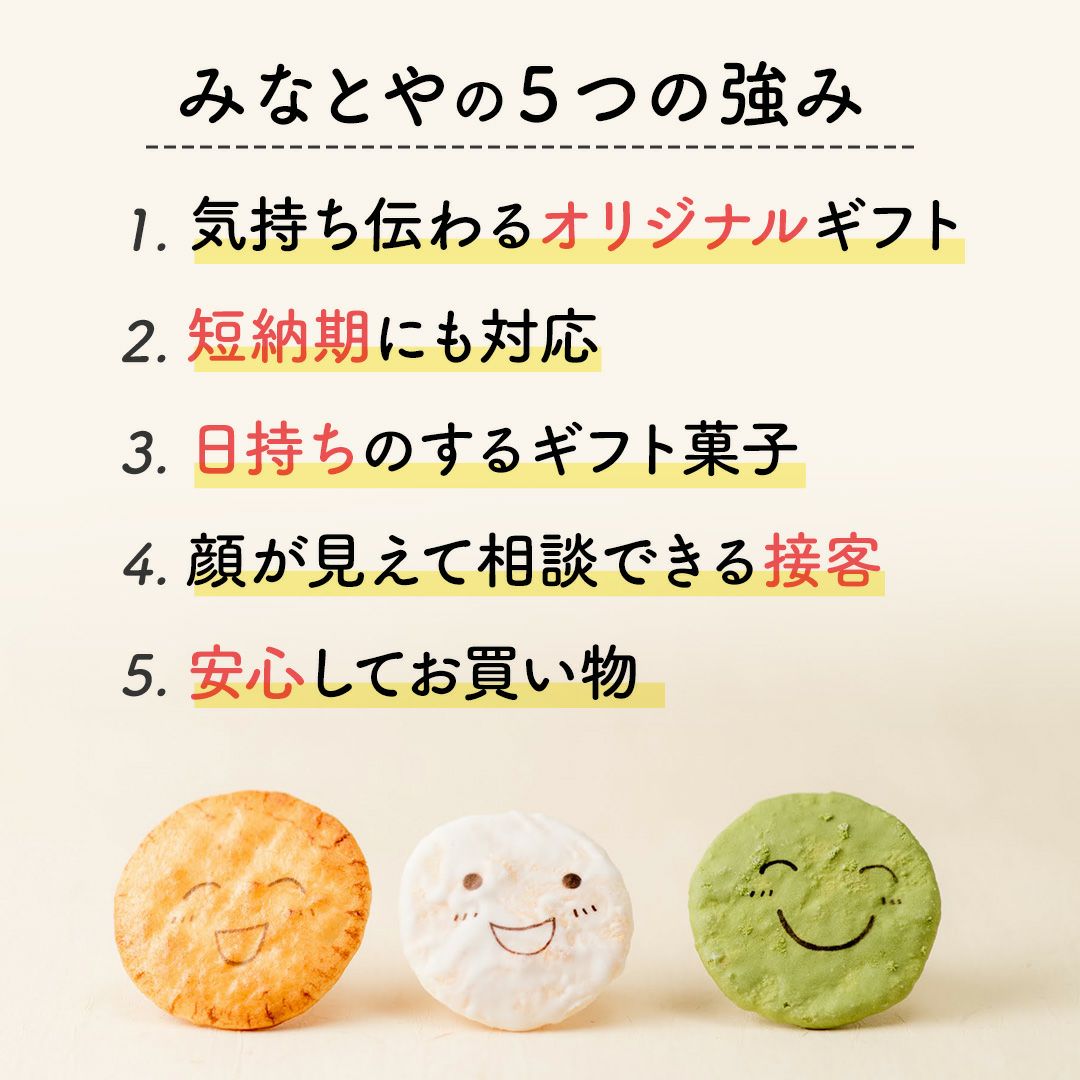 • ご丁寧に梱包して頂き、ありがとうございました!!職場への退職プレゼントを探しており、この度みなとやさんの♡型おせんべい購入させて頂きました!「ありがとう」のシール付きで注文し、職場のみなさんからもかわいい!!と大人気でした。また個人的にも利用させて頂きます。スタッフのみなさんもお身体大切になさって下さいね!!