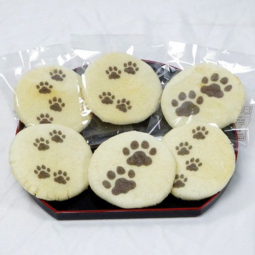 肉球柄のせんべいです。1枚個包装のバラでのご提供です。