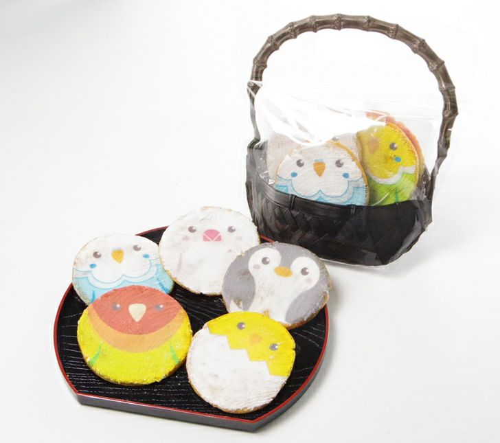 ことりのかわいらしいデザインのおせんべいギフトです。個包装になっています。お好きな柄をお選びいただけます。