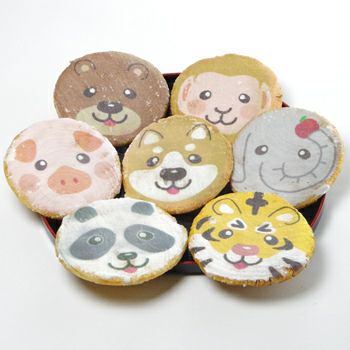 ZOOせん(7枚バスケットの絵柄袋入り) 甘い 販売価格: ¥ 1,700 税込 手提げかごの写真がプリントされた袋に入ったかわいい動物のお顔の書いたおせんべいギフトです。袋の中には七福神にちなんだ7枚の動物イラストせんべい「七福動物せんべい」が入っています。 商品を見る お気に入りに登録する