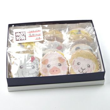 ZOOせん(1枚入り個包装袋バラ) 甘い 箱詰めオプション 販売価格: ¥ 220 税込 かわいい動物のお顔の書いたおせんべいギフトです。7種類の動物モチーフせんべい。 商品を見る お気に入りに登録する