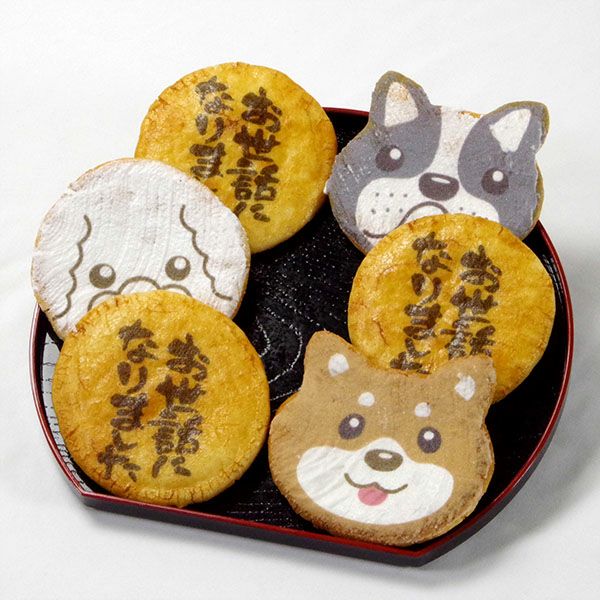 わんべい(5枚・和籠模様の袋入り) 甘い しょっぱい 販売価格: ¥ 1,200 税込 カワイイワンちゃんをモチーフにした犬モチーフ煎餅。わんべいの和籠模様袋5枚入りわんべいです。 商品を見る お気に入りに登録する