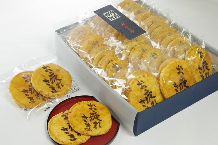 「お疲れさま」の文字入りお煎餅です。1枚づつ個包装になっておりますので手軽にお渡しできます。