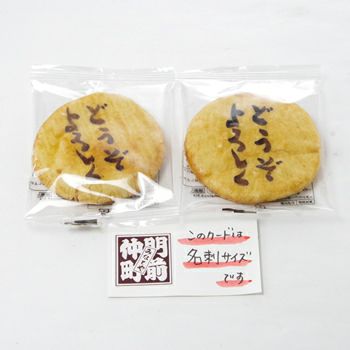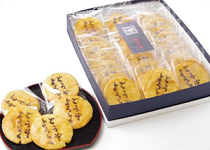 気持ちを伝えるお菓子「菓子文シリーズ」「どうぞよろしく」 の文字がお煎餅の表面に印刷された“ご挨拶せんべい”です。