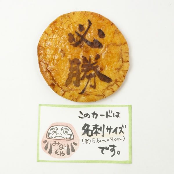 会社を退職する時にみなとやさんの七福にゃんべいと文字入りおせんべいを配り、皆さんに「カワイイね、どこで頼んだの?今度使ってみようかな」と言っていただけました。以前も長期で入院し、退院の際にお願いしたのですが、物だけでなく、感謝の気持ちも言葉(文字)にしてあげれるのは嬉しいです。大勢の人にあげたので、金額がかなりかかったので、もう少し小さいバージョンで安いのも作っていただけると助かります。