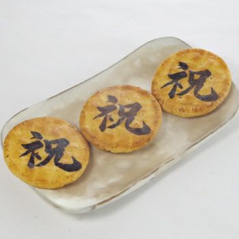 気持ちを伝えるお菓子「菓子文シリーズ」の中でも定番の「祝」 の文字がお煎餅の表面に印刷された“祝せんべい”です。 周年記念行事や卒業卒園などのお祝いのイベントの記念品として大変ご好評です。