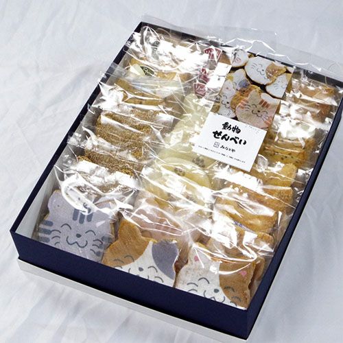 会社を退職する時にみなとやさんの七福にゃんべいと文字入りおせんべいを配り、皆さんに「カワイイね、どこで頼んだの?今度使ってみようかな」と言っていただけました。以前も長期で入院し、退院の際にお願いしたのですが、物だけでなく、感謝の気持ちも言葉(文字)にしてあげれるのは嬉しいです。大勢の人にあげたので、金額がかなりかかったので、もう少し小さいバージョンで安いのも作っていただけると助かります。