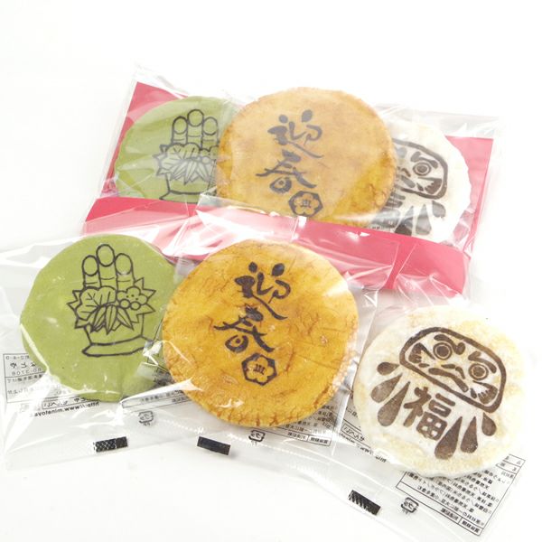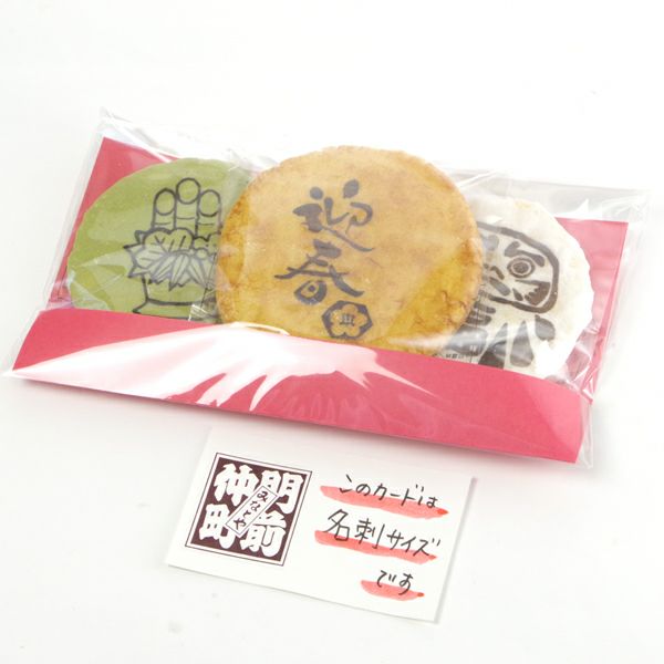 お年賀柄プリント煎餅(3枚台紙袋)