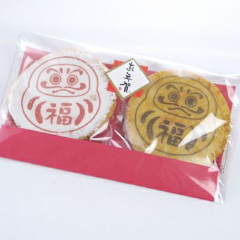 ほほえみ(笑)のおせんべい。2枚入りの手渡しプチギフトに最適です!