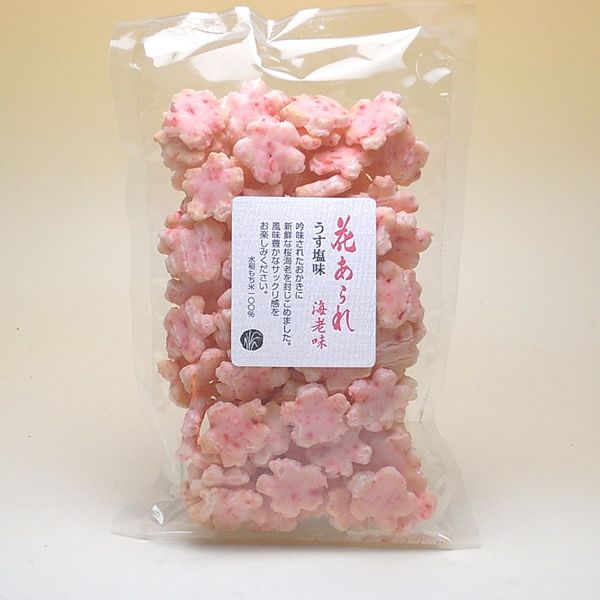 桜シリーズの第二弾! こちらは桜の花びらをモチーフにしたえびあられです。味自体には桜の風味はしませんが、えびのピンクが華やかに桜をイメージさせております。