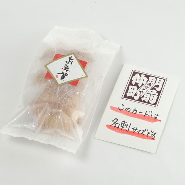 • この度は2枚おせんべい袋にシール名前入り素敵に入れて頂き有難うございました。退職時の1人1人に手渡しするのに喜ばれました。おせんべいのコメントもぴったりでほのぼの気分で皆様に感謝の気持ちを頂きました。又、次回もお返し、お礼する時は是非よろしくお願い致します。社員の皆様方本当に有難うございました。