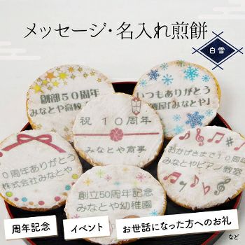 会社を退職する時にみなとやさんの七福にゃんべいと文字入りおせんべいを配り、皆さんに「カワイイね、どこで頼んだの?今度使ってみようかな」と言っていただけました。以前も長期で入院し、退院の際にお願いしたのですが、物だけでなく、感謝の気持ちも言葉(文字)にしてあげれるのは嬉しいです。大勢の人にあげたので、金額がかなりかかったので、もう少し小さいバージョンで安いのも作っていただけると助かります。