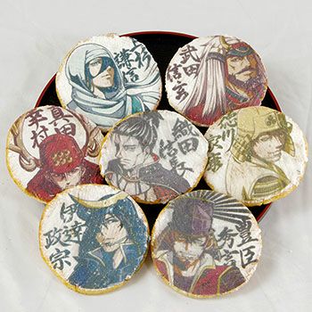 戦国武将をモチーフにしたお煎餅。織田信長・豊臣秀吉・徳川家康・真田幸村・伊達政宗・上杉謙信・武田信玄を描いた戦国七武将せんべい。