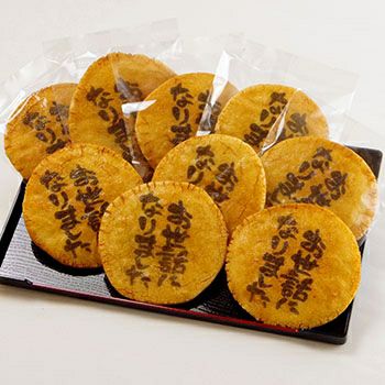 簡単にメッセージ煎餅が出来ます。菓子文・オリジナル名入れメッセージ煎餅《カラー対応醤油バージョン》【*納期指定は必ず注文日より7日以降の日付でして下さい】注)1デザイン30枚~のオーダー品